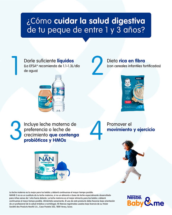 Cuando los niños no tienen la madurez digestiva necesaria, la proteína contenida en la leche de vaca puede provocarles malestares como cólicos o diarrea; cerciórate de ofrecerle leche especial para niños, como NAN® 3 Optimal Pro, que además de contener las vitaminas y minerales que necesita para su día a día, tiene proteína de fácil digestión para cuidar y proteger su salud digestiva.