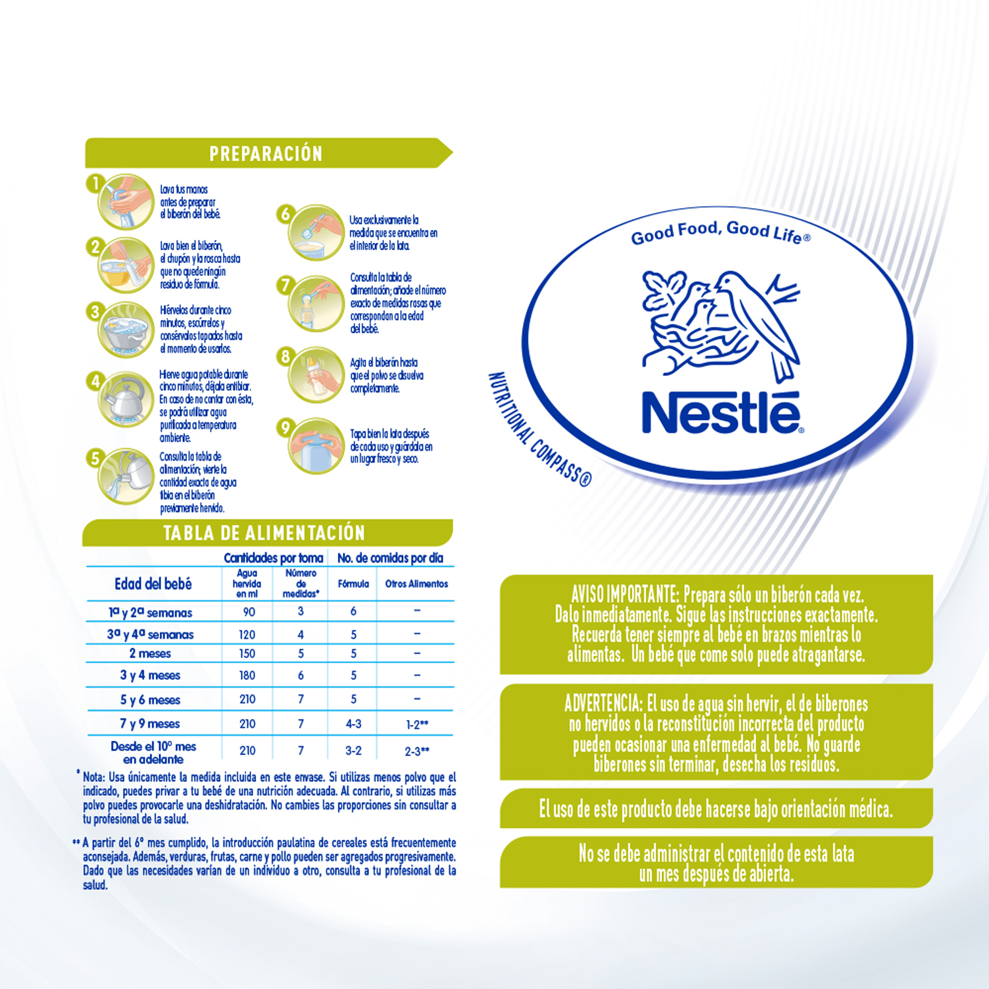 Hecho en Singapur por Wyeth Nutitionals (Singapore) Pte. ltd. No. I Tuas South Avenue 4 Singapore 637609. Importado y Distribuido por Marcas Nestlé, SA. de C.V., Miguel de Cervantes Saavedra No. 301 PB Torre Sur, Col. Granada, 11520, Ciudad de México. RFC. MNE0409226K9. Marcas Registradas usadas bajo licencia de su titular, Société des Produits Nestlé SA, Case Postle 353, 1800 Vevey, Suiza. Fecha de caducidad y lote indicados en el envase. Consérvese en un lugar fresco y seco. Conserve el ambiente. Deposite el envase vacío en la basura.